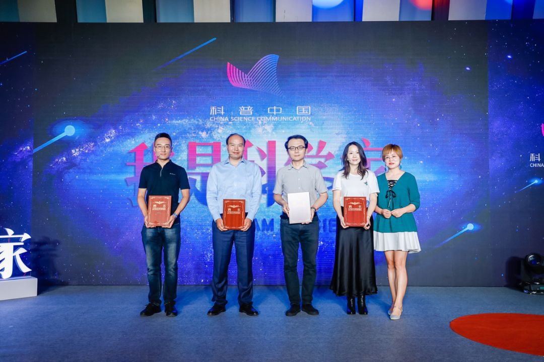 我是科学家总策划吴欧为现场科学家颁发证书。